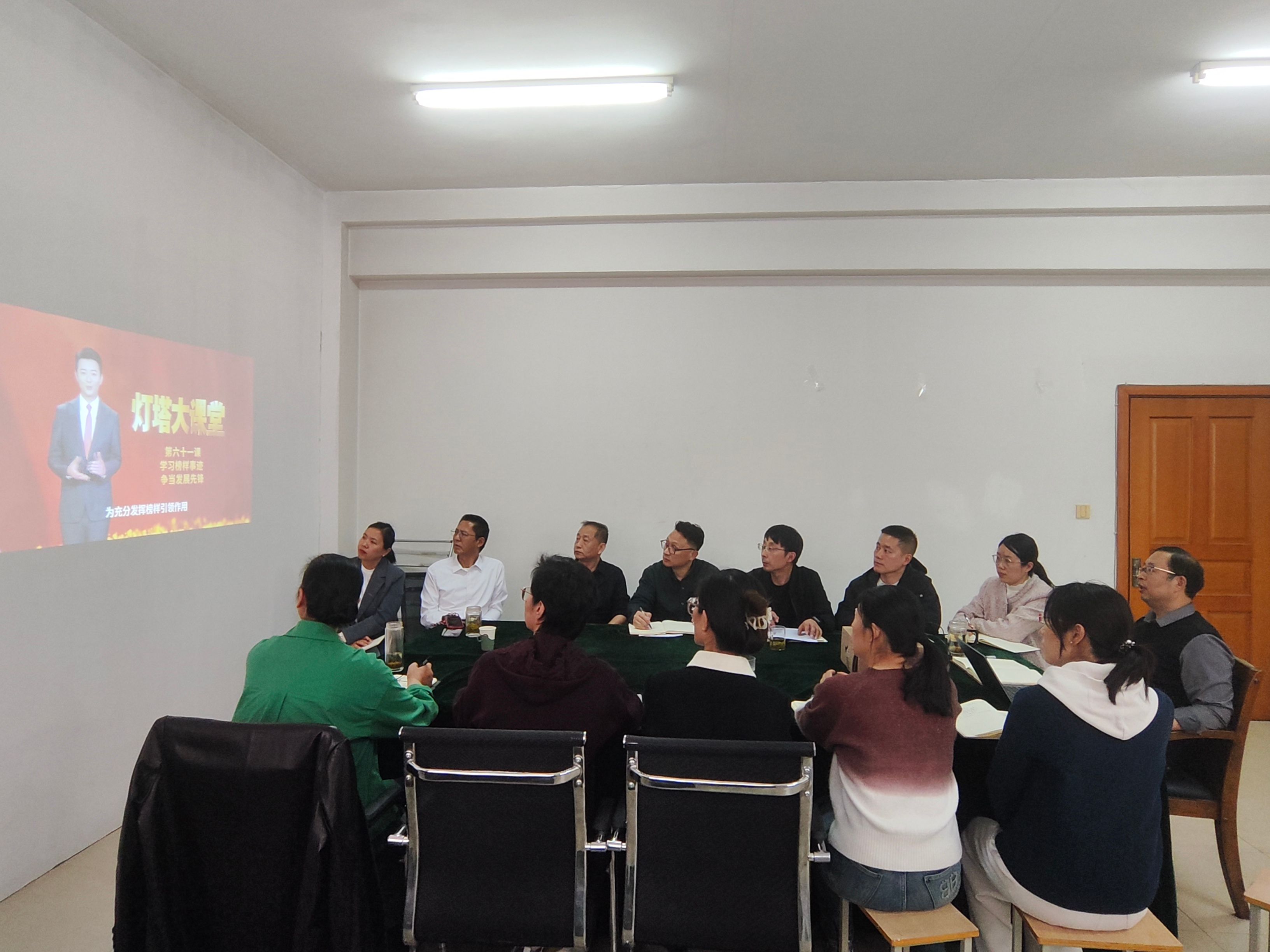 最后,支部全体党员集体观看“灯塔大课堂”第六十一课《学习榜样事迹、争当发展先锋》。