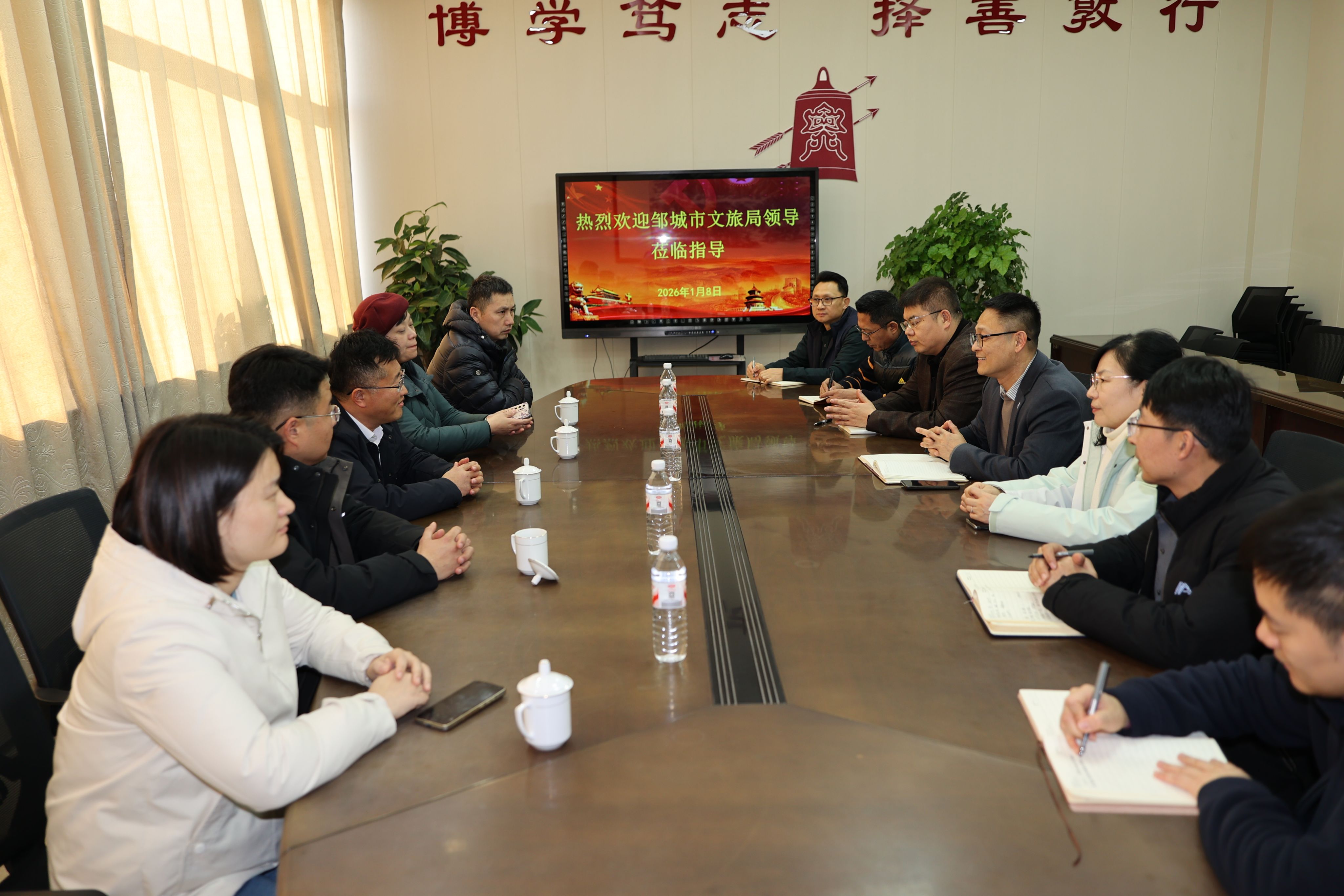 1月8日,邹城市文化和旅游局党组书记、局长高胜及相关文旅产业负责人一行来我校曲阜师范校区开展调研交流。伟德国际victor·1946源自院长曹光海、副院长秦胜营、杨波,文化艺术与产业研究院正处级干部刘秋香陪同调研,并组织召开座谈会,座谈会由曹光海主持。